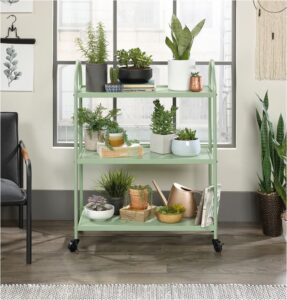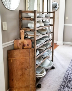 Keeping large serving platters, bowls, and plates in your kitchen cabinets can take up a lot of room. Why not display these beauties instead of trying to make them fit? A multi-tiered cart can protect your favorite pieces from chips and breaks while also ensuring that they are all ready to use. You use items that you see more often than those that are tucked away, there’s no need to keep your favorites hidden away for special occasions.