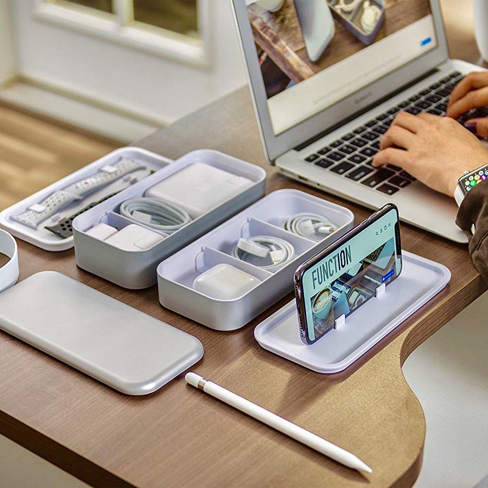 You can use a stylish charging dock or wall-mounted phone holder, or opt for a simple tray on your countertop or desktop to corral and charge your devices. This storage strategy will help keep your devices protected and make it easier to find what you’re looking for.