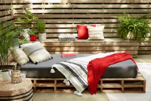Choose a table and chairs that can withstand Houston’s weather extremes. Look for durable materials that are easy to clean and maintain and will stay cool (for example, try to avoid metal chairs that retain the heat). If space is limited, opt for stackable chairs that can be stored away when not in use. Add a touch of personality with colorful cushions or tablecloths that complement your outdoor aesthetic.