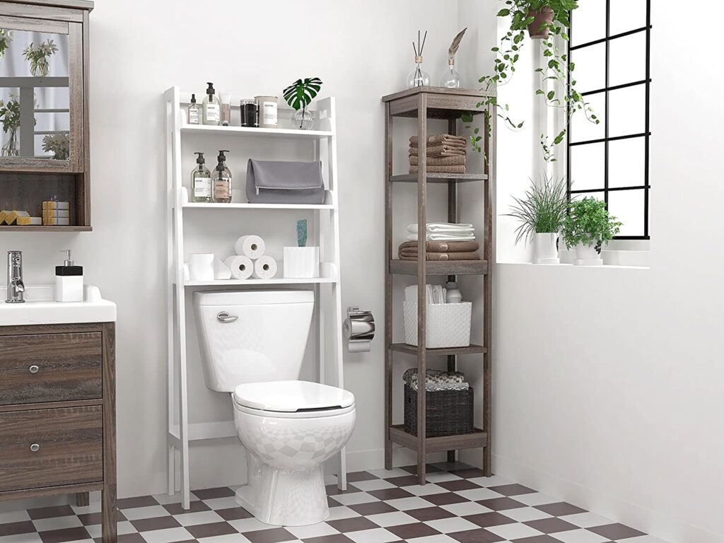 Much like the space above your bathroom sink, the space above your toilet can be valuable real estate for storage. These over the toilet shelving units are built to stand freely over a toilet tank and can be found featuring all kinds of useful storage options including cabinets, drawers and towel racks.