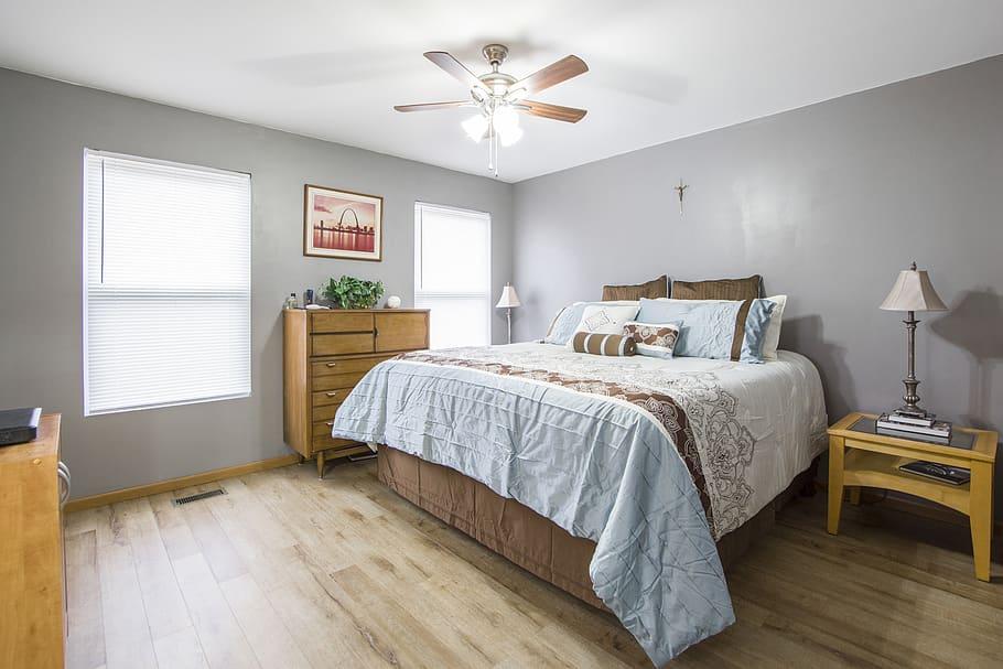 Where kitchens and bathrooms rely on bright, even lighting, bedrooms are all about comfort and coziness. Bedroom lights range from warm and simple to brilliantly decorative, every detail contributing to a sense of contentment. For simplicity, add a ceiling light as the main fixture with a pair of bedside sconces or table lamps. For an ornate look, add floor lamps, recessed lights, or track lighting to brighten up the room and add more focal points.