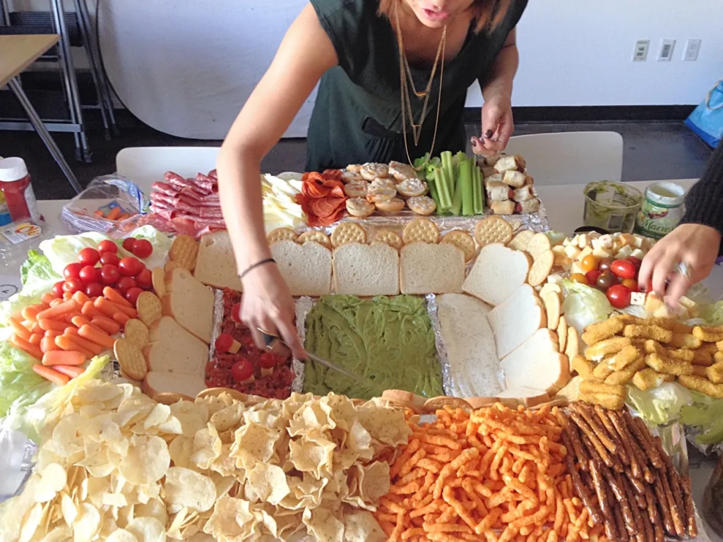 Put a creative spin on classic game-day snacks with a tailgate-inspired menu featuring dishes like loaded nachos, buffalo chicken sliders, and grilled bratwurst. Set up a self-serve buffet with a variety of options for guests to customize their plates and satisfy their cravings throughout the game. Make sure to provide lots of napkins and garbage cans, so that the clean up you have to do post-game is minimized.