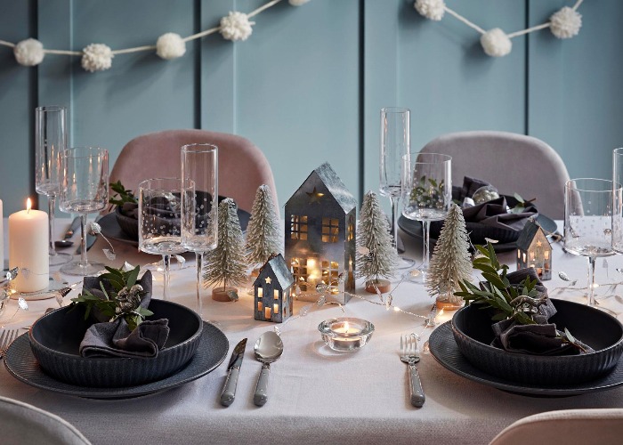 Begin by picking a theme for decorating your holiday table. Defining a color scheme not only makes the table look extra special but adds a polished look. If you’re not sure what style to go for, classic red, green or gold always adds a traditional look, frosty silver and white looks cool, crisp and fresh, while for a more contemporary take, the Scandi look teams red and white with natural touches. Or team rose gold and copper for an indulgent glitzy look.