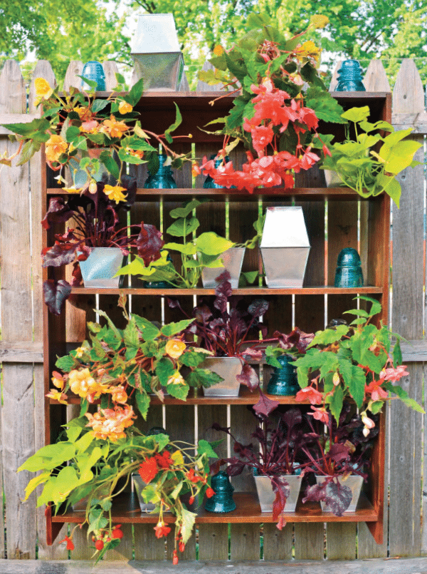 When placing plants and greenery, don’t forget that in a small space, sometimes going up works best! Vertical gardens can be trained to grow up trellises and potted plants can be placed on shelves – old bookcases can work very well, especially if you like the shabby chic look.
