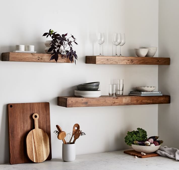 Floating shelves can revolutionize kitchen organization while keeping aesthetics in mind. Use them to store frequently used spices, cooking utensils, or colorful crockery. Incorporating materials like wood or metal can seamlessly complement your kitchen’s style. When placed at eye level, these shelves make navigating through your kitchen a delightful experience.