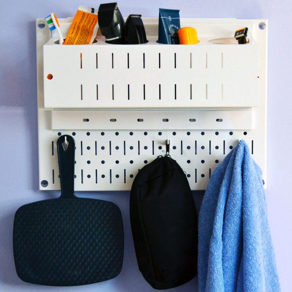 Pro Tip: Paint the pegboard with chalkboard paint to add shopping lists or meal plans!