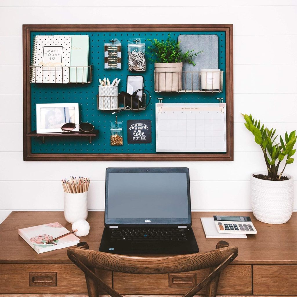 - Go bold: Paint your pegboard an accent color to make it a design feature