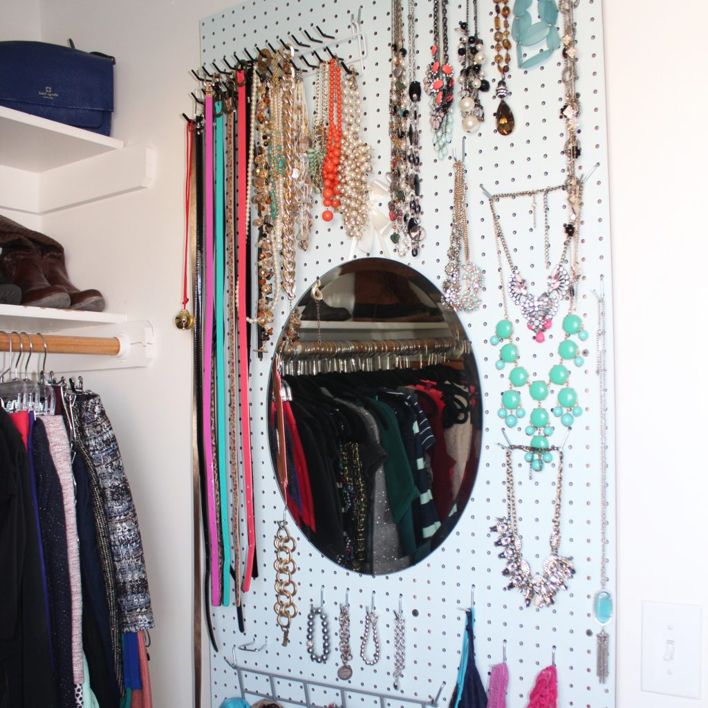 - Use clear jars (attached with pegboard hooks) for buttons/beads