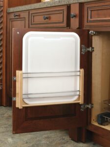 Install a cutting board holder on the inside of a cabinet door. This frees up shelf space and keeps your cutting boards within easy reach.