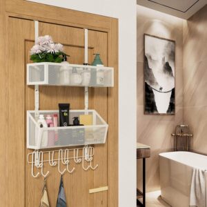An over-the-door organizer can be a game-changer in small bathrooms. They can be used to store a variety of items, from extra rolls of toilet paper and cleaning supplies to hairdryers and beauty products.