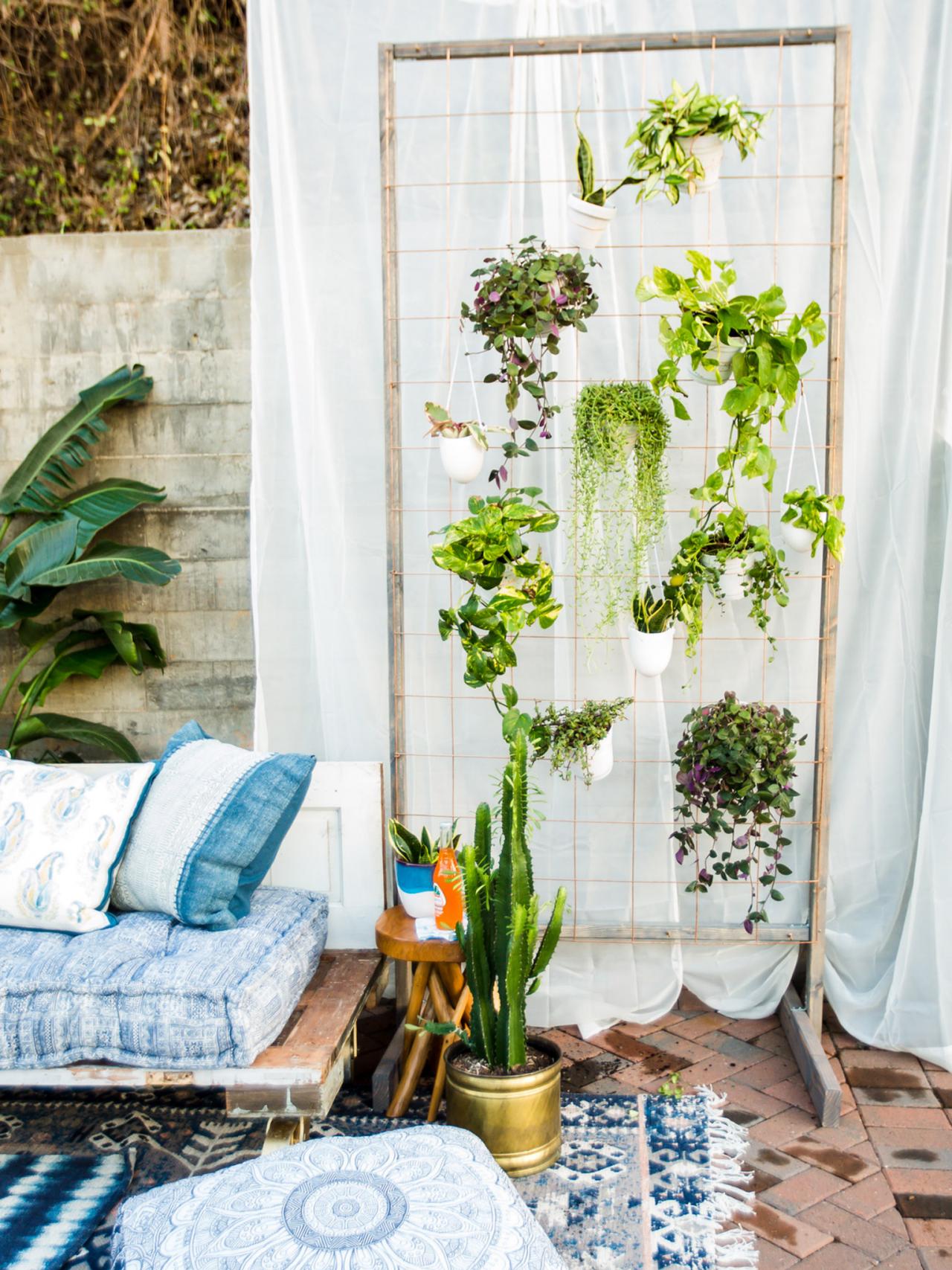 Add potted trees, ferns, hostas, and grasses to your landscaping for a pleasing mix of textures. Use unique things as pots or get creative with your containers, but avoid flowers that attract bees or your guests will flee your conversation zone in a hurry!